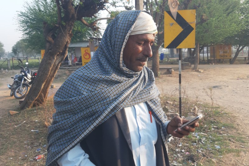 मोबाइल में जयपुर डेयरी की ओर से डाली गई राशि का मैसेज आते ही खुशी से चेहरा खिल उठा। मोबाइल में राशि को देखते हुए।