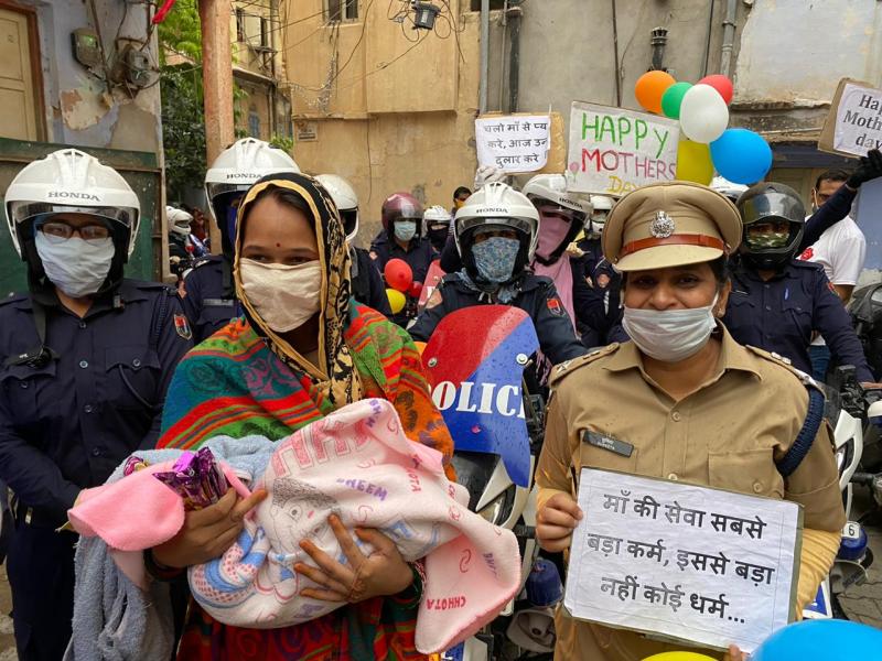 अतिरिक्त पुलिस उपायुक्त और निर्भया स्क्वॉड टीम की नोडल अधिकारी सुनीता मीना ने बताया कि जिन महिलाओं को कोरोना संक्रमण और कर्फ्यू के दौरान मातृत्व सुख मिला है और विषम परिस्थितियों में बच्चे को जन्म देकर सुखद अनुभूति प्राप्त की हैं। इस सुखद अनुभूति को अपने परिवार और रिश्तेदारों के साथ शेयर नहीं कर सकी। ऐसी सभी जननियों के लिए टीम ने मदर्स डे मनाया। निर्भया टीम ने चांदपोल स्थित रिजर्व पुलिस लाइन से रवाना होकर भट्टाबस्ती, शास्त्री नगर, छोटी बड़ी चौपड़ और रामगंज सहित कर्फ्यूग्रस्त क्षेत्रों में पहुंचकर नवजात शिशुओं की माताओं को शुभकामनाएं दी।
