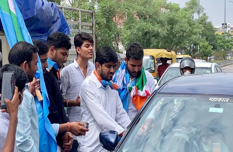 NSUI protest- कार्यकर्ताओं ने मांगी भीख