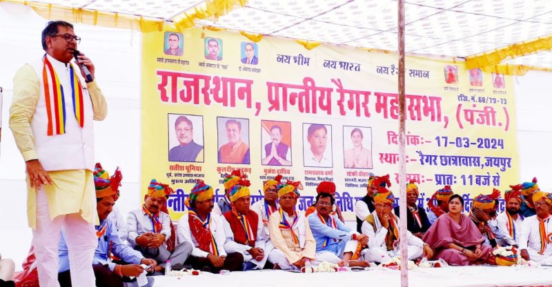 रामसहाय वर्मा ने कहा कि समाज को सभी सामाजिक मुद्दों को मिलजुल कर आपस में हल करना चाहिए। सभ्य समाज के निर्माण के लिए रैगर समाज को शिक्षा व राजनीति के क्षेत्र में प्रगति करनी होगी। समाज में व्याप्त कुरीतियों का त्याग करना होगा। कार्यक्रम में प्रदेश अध्यक्ष दयानंद कुलदीप, राम प्रकाश उदेनिया, महावीर कांसोटिया, राष्ट्रीय उपाध्यक्ष शंकर लाल नारोलिया ,संरक्षक ताराचंद जाजोरिया,महिला प्रदेश अध्यक्ष प्रतिभा नुवाल मौजूद रहे। वक्ताओं ने मुख्य रूप से समाज के बाहुल्य के अनुपात में राजनीतिक प्रतिनिधित्व देने व समाज का स्वामी आत्माराम ज्ञान लक्ष्य के नाम से सरकार में बोर्ड गति करने की मांग की।