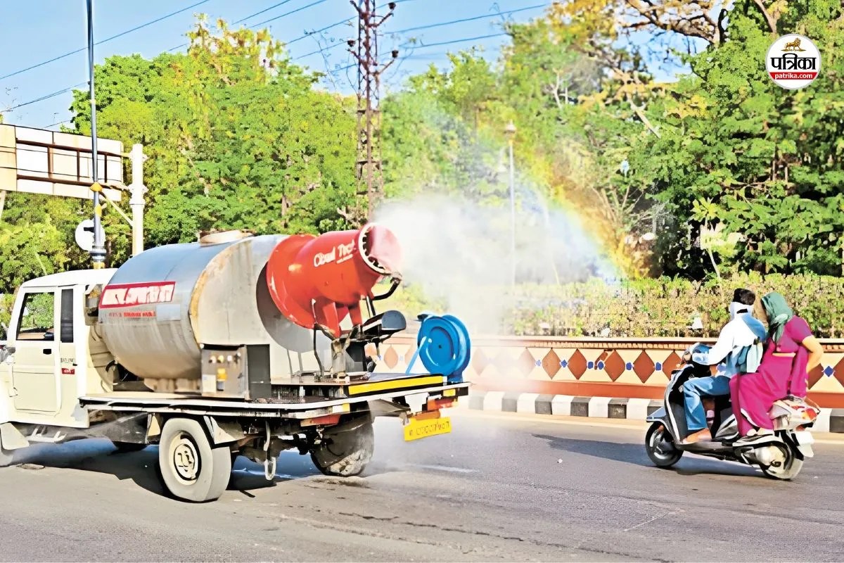 कोटा: फुहारें छोड़कर गर्मी से राहत देती एंटी स्मॉग गन, पत्रिका फोटो