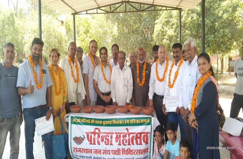 जयपुर। राजस्थान जनमंच ट्रस्ट और पक्षी चिकित्सालय की ओर से शनिवार को जवाहर नगर के चित्रकूट पार्क में परिंडा महोत्सव और जनजागृति सभा का आयोजन किया गया। मंच के कार्यकत्र्ता हनुमान घोड़ा के संयोजन में आयोजित इस कार्यक्रम में संस्था महासचिव कमल लोचन, बीएल विजय, एके ऋषि, सुनील गुप्ता, दर्शन शर्मा, ऋतु लोचन, अभय नाहर,रवि खत्री आदि ने अपने विचार व्यक्त किए और आमजन से अपील की कि वह इस भीषण गर्मी में बेजुबान पक्षियों की प्यास बुझाने के लिए परिडों की व्यवस्था कर पुण्य के कार्य में अपनी भागीदारी दें। संस्था महासचिव कमल लोचन ने जनमंच ट्रस्ट की गतिविधियों की जानकारी दी। कार्यक्रम के दौरान पशु पक्षी कल्याण के क्षेत्र में सराहनीय कार्य करने वाले कार्यकर्ताओं को सम्मानित किया गया।