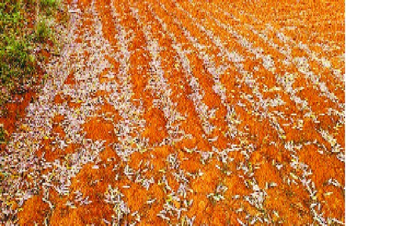 जोधपुर में हेलीकॉप्टर से हमले के बाद मृत टिड्डियां।