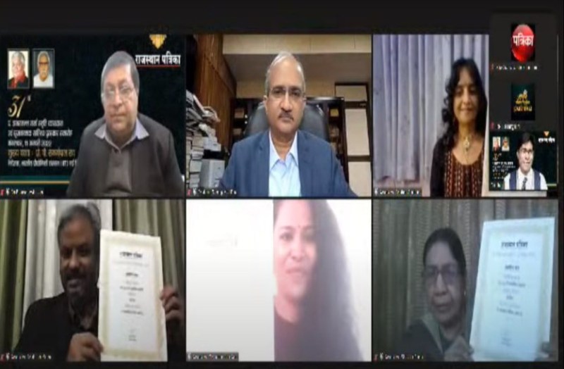 प्रो. राव ने पत्रिका समूह के सृजनात्मक साहित्य पुरस्कारों के तहत कहानी चर्ग में जयपुर के महेश कुमार और कविता के लिए तिरुवनंतपुरम (केरल) की अनामिका अनु को प्रथम पुरस्कार के रूप में डिजिटल माध्यम से 21—21 हजार रुपए दिए गए। इसी तरह कहानी में जयपुर की शकीला बानो और कविता में झाबुआ (मप्र) की मालिनी गौतम को द्वितीय पुरस्कार के रूप में 11—11 हजार रुपए प्रदान किए गए।