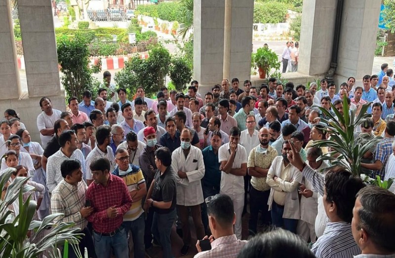 जयपुर। प्रदेश के सबसे बड़े सवाई मानसिंह अस्पताल में नर्सिंग कर्मियों ने दो घंटे की पेन डाउन स्ट्राइक कर दी है। नर्सिंग कर्मियों की ओर से अस्पताल प्रबंधन के खिलाफ विरोध जताया गया हैं। मामला पार्किंग को लेकर है। जिसका नर्सिंग कर्मियों की ओर से विरोध किया जा रहा है। नर्सिंग कर्मियों का कहना है कि उन्हे पार्किंग के लिए जगह नहीं दी जा रही है। अस्पताल प्रशासन की ओर से एक आदेश जारी किया गया है। जिसमें नर्सिंग कर्मचारियों के लिए धनवन्तरि भवन में वाहनों को पार्किंग करने के लिए कहा गया है। आदेश के अनुसार नर्सिंग कर्मचारी अपने वाहनों को डॉक्टर्स के वाहनों की जगह पार्क नहीं कर सकते है।