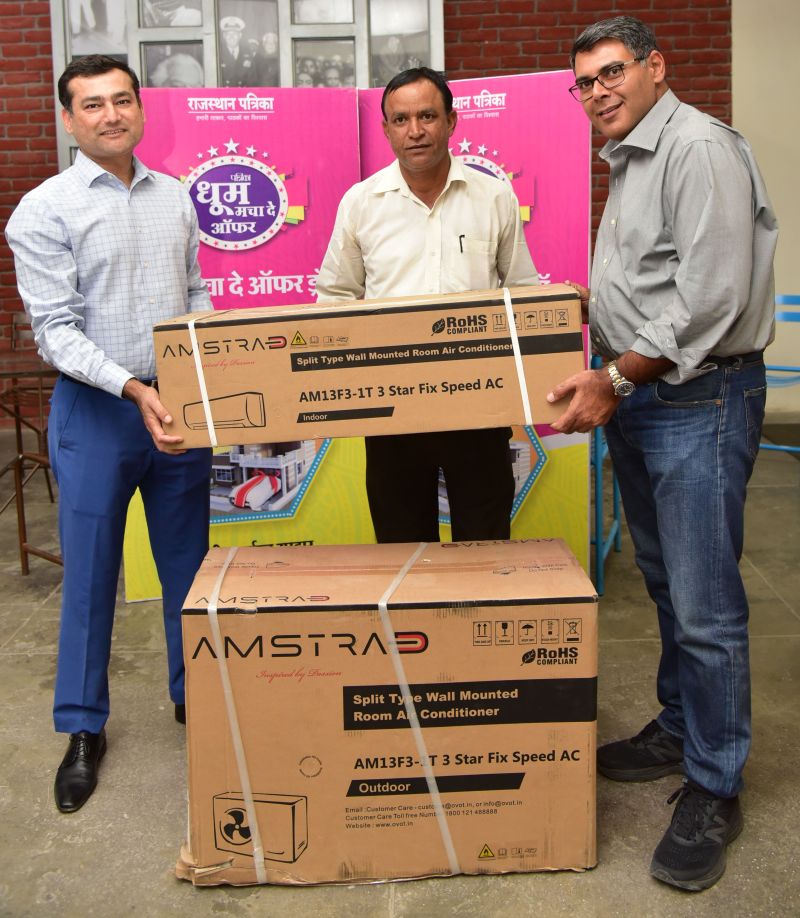 इससे पूर्व सक्षम इंस्टीट्यूट, गोपालपुरा के निदेशक राजेन्द्र हरितवाल ने कोटपूतली, बनेठी निवासी महेशचंद शर्मा को एसी तथा बांदीकुई के दिनेश सेठी को एलईडी भेंट किया। महेशचंद ने बताया कि वे और उनका परिवार कई वर्षों से नियमित पत्रिका के पाठक हैं। पत्रिका में प्रकाशित खबरें सटीक और विश्वसनीय होती हैं। खेल पृष्ठ की खबरें भी बेहतर होती हैं। दिनेश के परिवार के सदस्यों ने पत्रिका की खबरों की सराहना करते हुए कहा कि उन्हें पत्रिका पढ़े बिना सुकून नहीं मिलता है।