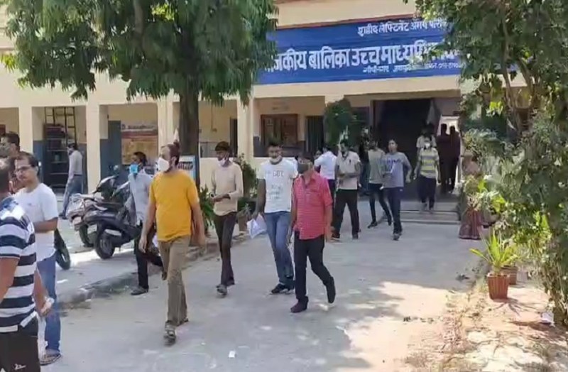 दोपहर की परीक्षा के लिए भी सुबह ही परीक्षा केंद्र पहुंचे अभ्यार्थी