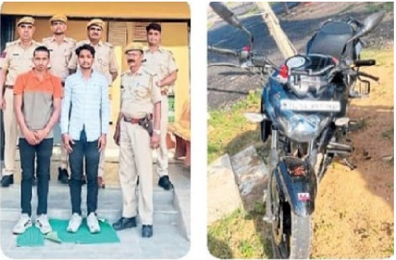 पुलिस ने पीछा कर दोनों आरोपियों को पकड़कर मोटरसाइकिल के नंबर चेक किए तो दूसरी मोटरसाइकिल के नंबर पाए गए। पुलिस द्वारा आरोपियो से गहनता से पूछताछ करने पर चोरी की मोटरसाइकिल व पुलिस से बचने के लिए फर्जी नंबर प्लेट लगाना स्वीकार किया। जिस पर पुलिस ने रोहिताश शर्मा (20) पुत्र रामस्वरूप शर्मा निवासी बिहारीसर थाना थानागाजी जिला अलवर व जितेंद्र शर्मा (21) पुत्र मुकेश शर्मा निवासी भूड़ियावास थाना थानागाजी जिला अलवर को गिरफ्तार कर अभियोग दर्ज किया गया। पुलिस दोनों आरोपियों से पूछताछ कर रही है।