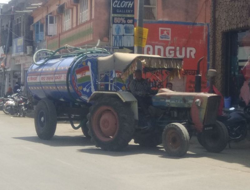 राजसमंद के मुख्य मार्ग से गुजरता पानी का टैंकर