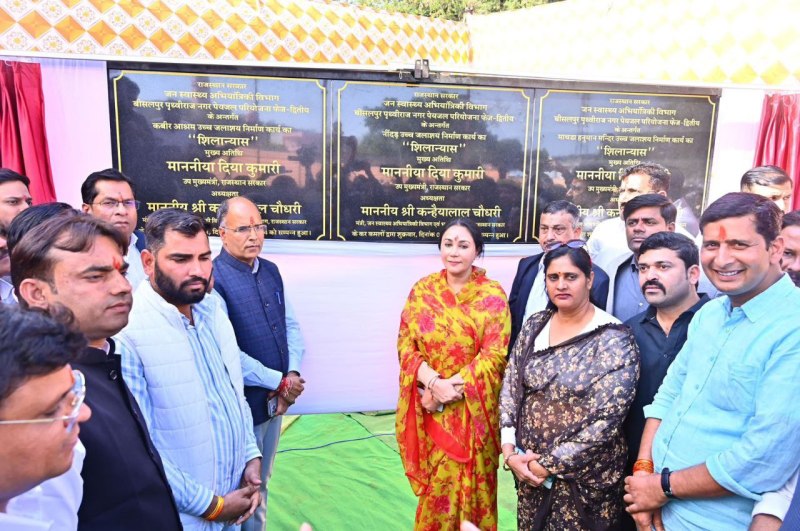 जयपुर. उपमुख्यमंत्री दिया कुमारी और जलदाय मंत्री कन्हैयालाल चौधरी ने शुक्रवार को विद्याधर नगर के नींदड़, कबीर आश्रम और माचड़ा हनुमान मंदिर क्षेत्र के लिए 18 करोड़ लागत वाली टंकी निर्माण की तीन पेयजल परियोजनाओं का शिलान्यास किया। तीनों टंकियों का निर्माण पूरा होने पर इन क्षेत्रों की 47 हजार की आबादी को बीसलपुर का पानी मिलेगा। इस दौरान उपमुख्यमंत्री दिया कुमारी ने कहा कि पृथ्वीराज नगर प्रोजेक्ट के तहत विद्याधर नगर विधानसभा क्षेत्र में पानी की आठ टंकियों का निर्माण होना है। नींदड़ में 20, कबीर आश्रम में 17.5 और माचड़ा में 22.5 लाख लीटर क्षमता की टंकियां बनेंगी। उन्होंने कहा कि जल जीवन मिशन के तहत हर घर जल कनेक्शन के लिए 15 हजार करोड़ रुपए का बजट दिया है। जलदाय मंत्री कन्हैयालाल चौधरी ने कहा कि जिस तरह शहर की पेयजल व्यवस्था को मजबूत किया जा रहा है उसी तरह पूरे प्रदेश की पेयजल व्यवस्था मजबूत करेंगे।