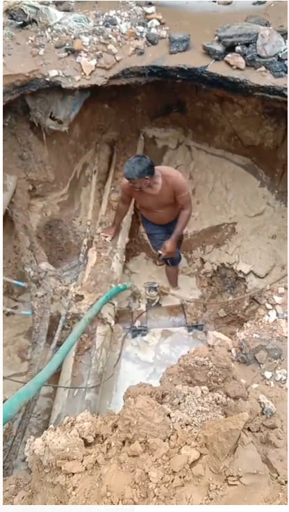 अंबाबाड़ी में 16 नंबर बस स्टैंड के पास शुक्रवार देर रात गैस लाइन बिछाते समय बीसलपुर सिस्टम की 10 इंच की लाइन तोड़ दी गई। मौके पर काम कर रहे मजदूर टूटी पाइप लाइन पर मिट्टी डाल कर चुपचाप चले गए। शनिवार सुबह जैसे ही सप्लाई शुरू हुई वैसे ही पानी का फव्वारा फूट पड़ा और सड़क दरिया बन गई। जलदाय इंजीनियरों के अनुसार करीब 25 लाख लीटर पानी व्यर्थ बह गया।