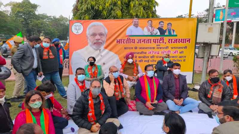 पंजाब में प्रधानमंत्री नरेंद्र मोदी की सुरक्षा में हुई चूक के विरोध में गांधी नगर सर्किल पर भाजपा ने धरना दिया था। इस धरने में भाजपा के सभी बड़े नेताओं ने हिस्सा लिया और पंजाब सरकार के खिलाफ जमकर नारेबाजी की। इस दौरान नेताओं ने इसे योजनाबद्ध तरीके से किया गया षड्यंत्र करार दिया है। धरने में शामिल हुए नेता प्रतिपक्ष गुलाबचंद कटारिया ने कहा कि ये योजनाबद्ध तरीके से किया गया षडयंत्र है। प्रदेश प्रवक्ता रामलाल शर्मा ने कहा कि पीएम के दौरे में प्रॉटोकॉल का पालन नहीं किया गया जो एक साजिश का हिस्सा था। पंजाब सरकार गलती स्वीकारे और इस चूक पर माफी मांगे।
