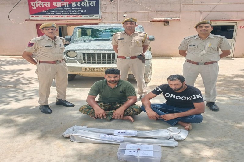 जयपुर। कोटपूतली-बहरोड़ जिले के हरसौरा थाना पुलिस ने संगठित अपराधों के खिलाफ कार्रवाई करते हुए पेट्रोल पंप पर डकैती की योजना बनाते दो कुख्यात आरोपियों को हथियारों सहित गिरफ्तार किया है, जबकि छह अन्य आरोपी अंधेरे का फायदा उठाकर मौके से फरार हो गए। पुलिस ने इनसे एक थार गाड़ी, देसी कट्टा और तीन जिंदा कारतूस बरामद किए हैं।