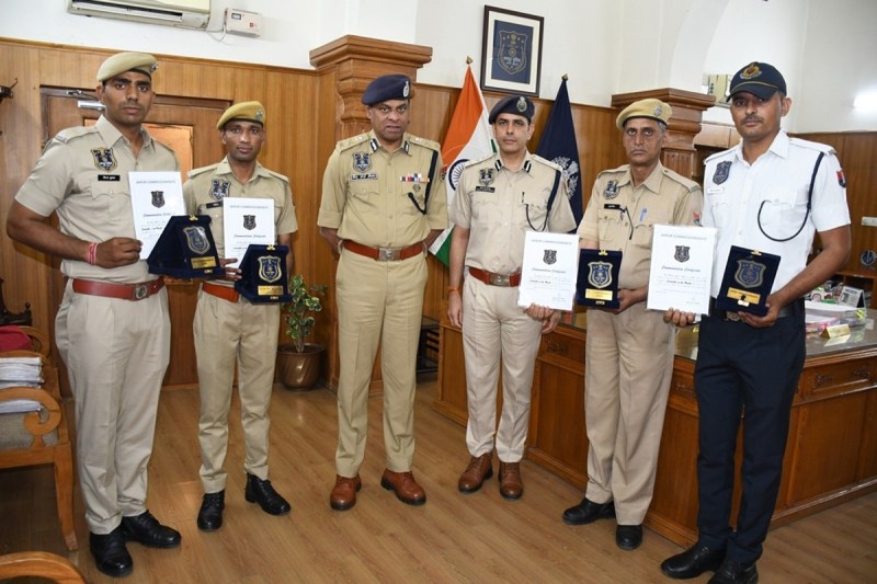 जयपुर। पुलिस कमिश्नर बीजू जॉर्ज जोसफ ने कानून-व्यवस्था व यातायात व्यवस्था में उत्कृष्ट कार्य करने वाले पांच पुलिसकर्मियों को कांस्टेबल ऑफ द मंथ अवॉर्ड से सम्मानित किया।