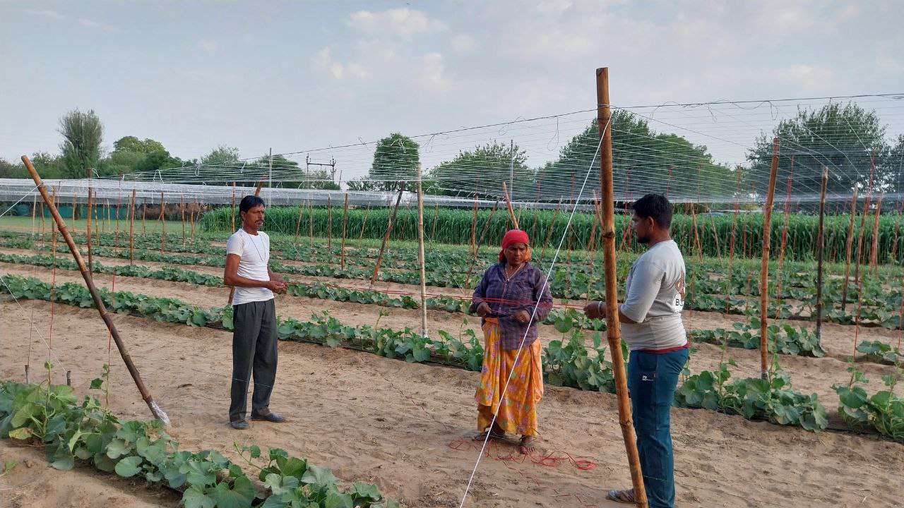चौमंू क्षेत्र के ग्राम भूरथल में किसान नारायण लाल सैनी ने अपने खेत में स्ट्रक्चर बनाकर लौकी की फसल तैयार की। इससे उन्हें कम मेहनत में अच्छी पैदावार मिल रही है।