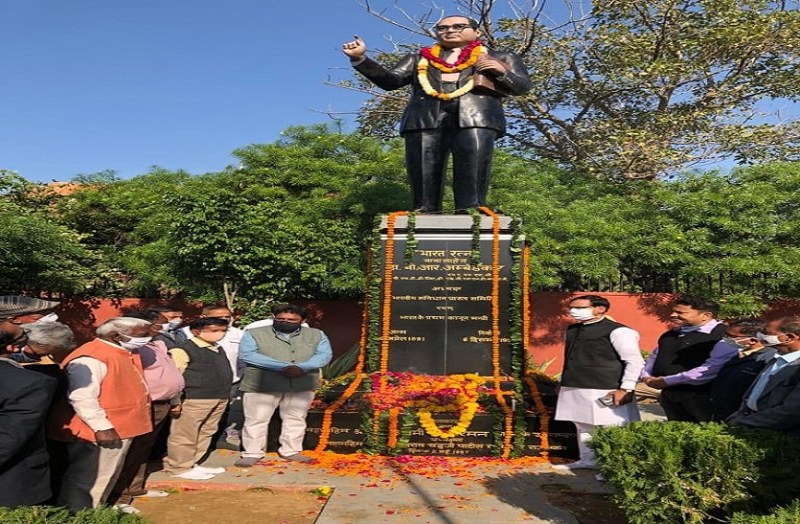 डॉ अंबेडकर को जयंती पर पुष्पांजलि अर्पित की