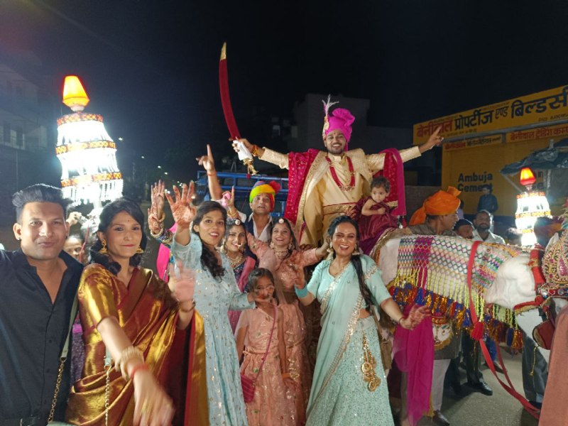 वैशाली नगर क्षेत्र के कई गार्डन व रिसोर्ट में शादियां हुईं। इस दौरान एक बारात क्षेत्र से गुजरी तो दूल्हे-बारातियों ने इस अंदाज में खुशी का इजहार किया।