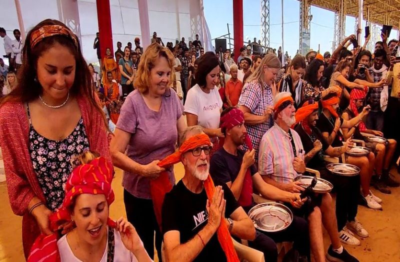 पुष्कर मेला : साथी के सिर पर साफा बांध इठलाई विदेशी युवतियां, देखें फोटो