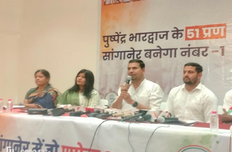 जयपुर। राजधानी जयपुर के सांगानेर विधानसभा के कांग्रेस प्रत्याशी पुष्पेंद्र भारद्वाज ने अपना घोषणा पत्र जारी किया है। भारद्वाज ने शनिवार को 51 प्रण, सांगानेर बनेगा नंबर वन घोषणा-पत्र लॉन्च किया। इस दौरान भारद्वाज ने अगले 5 सालों में किए जाने वाले कार्यों को लेकर अपना विजन भी बताया।