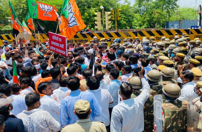 प्रदेश में बढ़ते अपराध और कलेक्ट्रेट सर्किल पर भाजयुमो कार्यकर्ताओं पर हुए लाठीचार्ज के विरोध में आज शहर भाजपा ने सड़क पर उतरकर गहलोत सरकार का विरोध जताया। प्रदर्शन में भाजपा के ज्यादातर विधायक और पूर्व विधायकों ने हिस्सा लिया, जबकि विधायक कालीचरण सराफ, नरपत सिंह राजवी और कैलाश वर्मा ने प्रदर्शन से दूरी बनाये रखी।