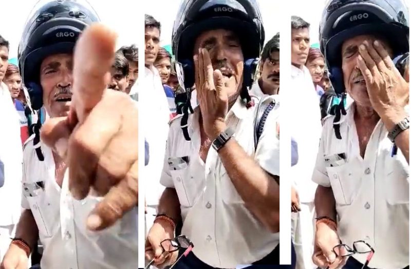 युवक ने पुलिसकर्मी से कहा कि बस वाला तेरा दामाद लगता है क्या। युवक ने उसे मंत्री जी की कोठी पर आने व तबादला कराने की धमकी दी। धमकी से परेशान यातायात पुलिसकर्मी की मौके पर रूलाई फूट पड़ी, वहां मौजूद लोगों ने समझाइश का प्रयास किया, लेकिन उसका रोना नहीं रूका।