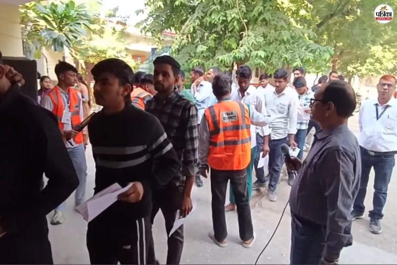 परिचालक भर्ती परीक्षा देने केंद्र पर पहुंचे अभ्यर्थी (फोटो-पत्रिका)