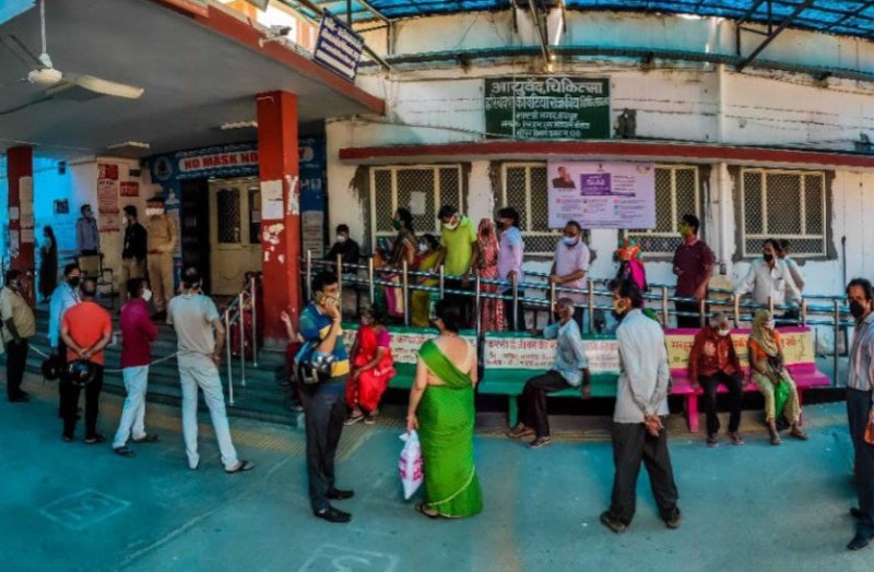 जयपुर- कांवटिया अस्पताल में लगी वैक्सीनेशन की लाइन। फ़ोटो अनुग्रह सोलोमन