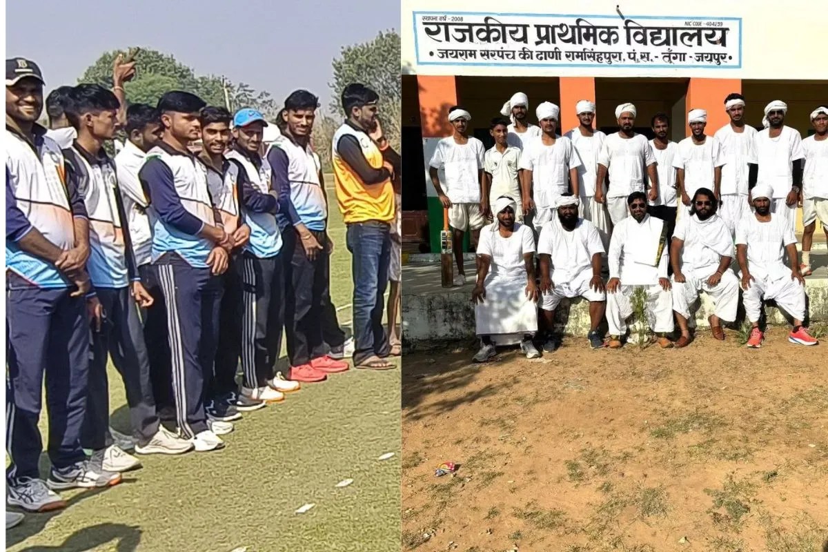 जयपुर जिले में धोती-कुर्ता और सिर पर गमछा पहने जब 11 खिलाड़ी देसी लुक में क्रिकेट मैदान में उतरे तो हर किसी की निगाहें उन पर टिक गई। फिल्म ‘लगान’ जैसे इस अनूठे मैच को देखने के लिए भारी जनसमूह उमड़ पड़ा।