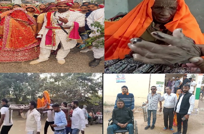 लोकतंत्र का उत्सव, चारपाई पर मतदान केंद्र पर पहुंची बुजुर्ग, ऑक्सीजन सिलेंडर और व्हील पर बैठकर डाला वोट