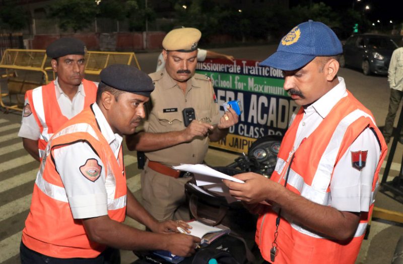 -यातायात पुलिस के चालानों की संख्या में कटौती हो रही है।