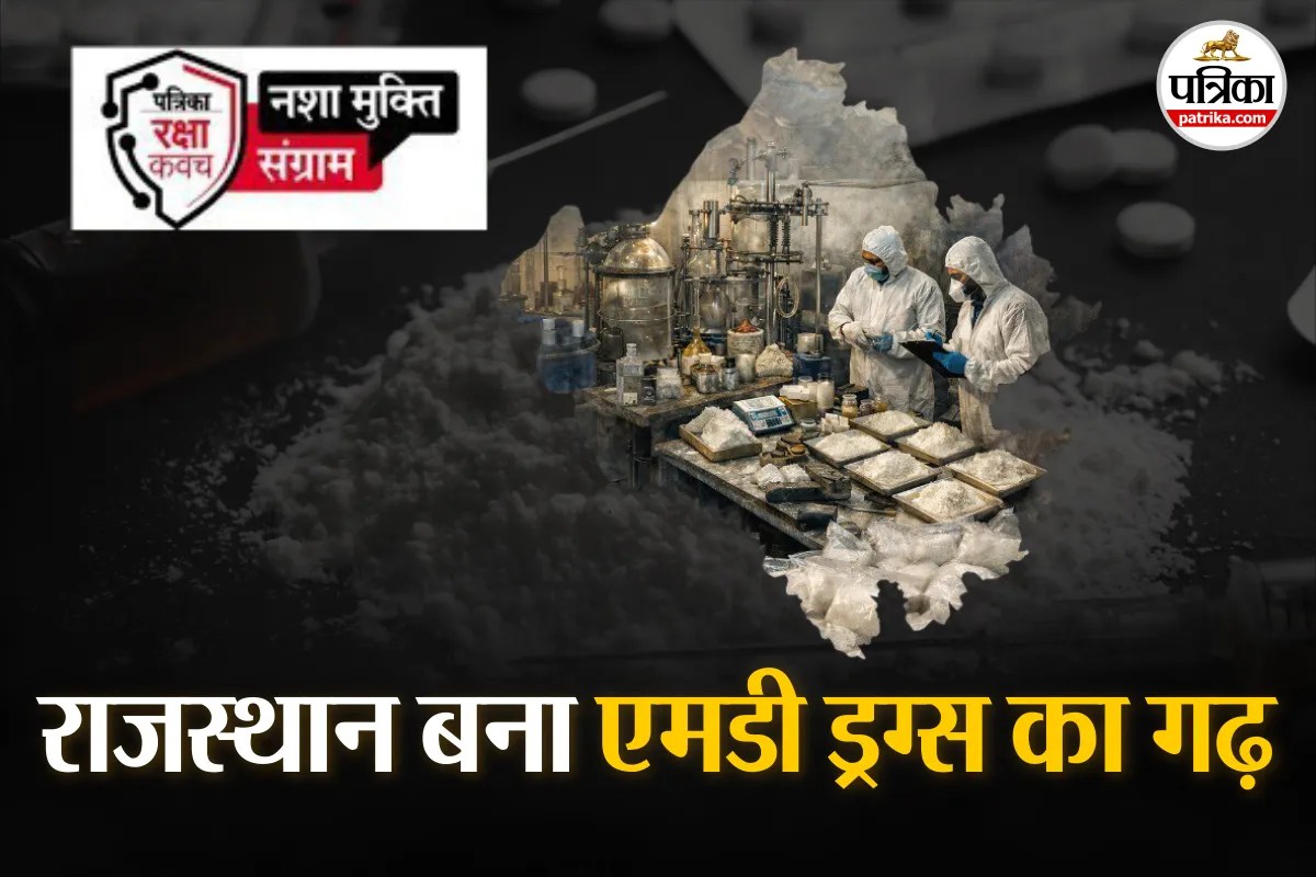 जयपुर। राजस्थान में एमडी ड्रग्स का अवैध कारोबार खतरनाक स्तर तक पहुंच चुका है। पत्रिका अभियान के बाद शुरू हुई पुलिस कार्रवाई में बीते तीन महीनों के दौरान हर छठे दिन एक ड्रग्स फैक्टरी का खुलासा हो रहा है। बाड़मेर, जोधपुर, झुंझुनूं, प्रतापगढ़, चित्तौड़गढ़ और झालावाड़ जैसे जिलों में खेतों, तबेलों, फार्महाउसों और झोपड़ियों में एमडी ड्रग्स बनाने की फैक्ट्रियां पकड़ी गई हैं।