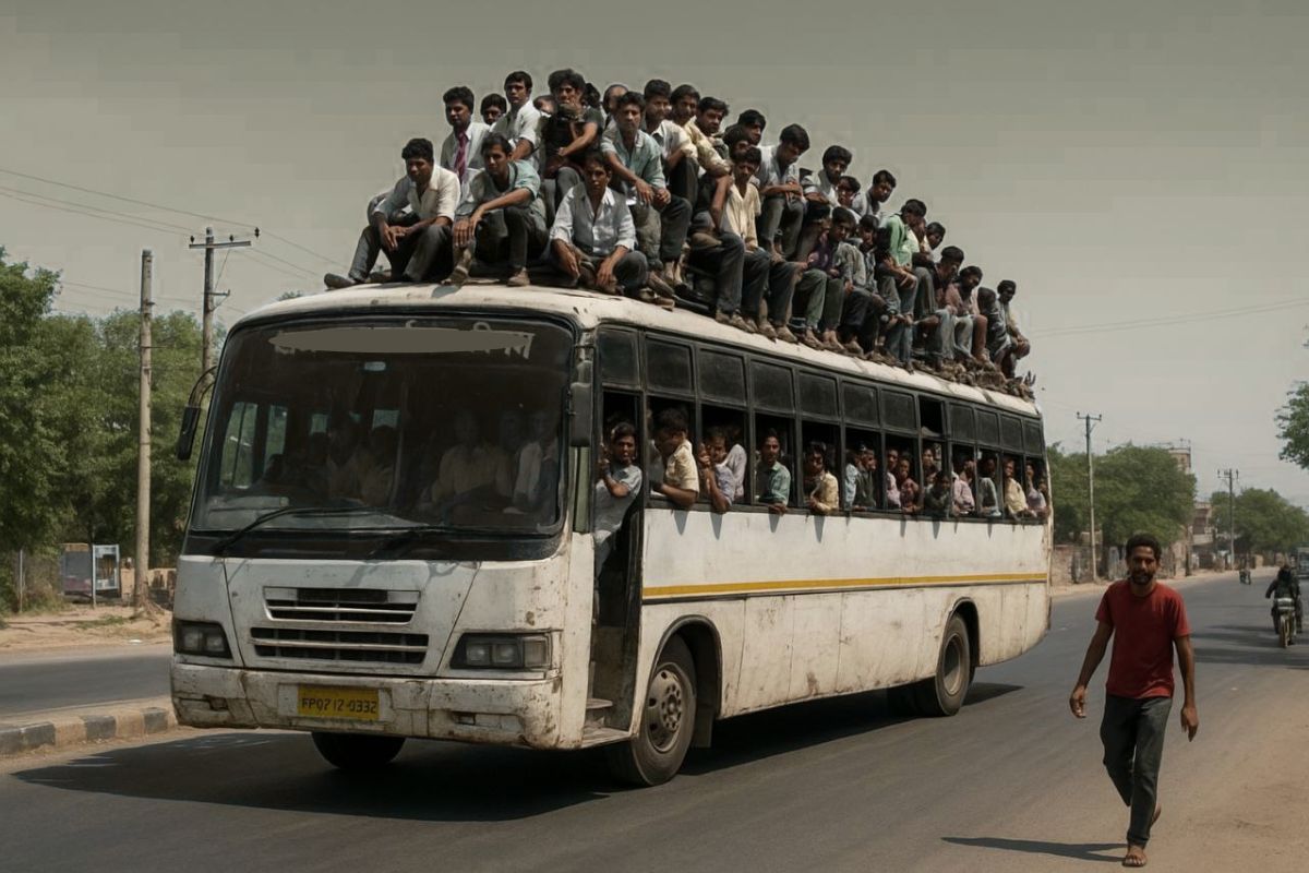 Jaipur News: राजधानी के जालूपुरा थाना क्षेत्र में गुरुवार को लापरवाही की हद पार करते हुए एक बस चालक ने सड़क पर लोगों की जान खतरे में डाल दी। मामला इतना गंभीर था कि पुलिस ने मौके पर ही बस को रोककर चालक और परिचालक के खिलाफ मुकदमा दर्ज किया। घटना 14 अगस्त 2025 की शाम की है। पुलिस के अनुसार, एमपी नंबर की बस का चालक एमआई रोड से वनस्थली मार्ग की ओर तेज रफ्तार और लापरवाही से बस चला रहा था। बस की छत पर लगभग 50 से 55 सवारियां बैठी हुई थीं, जबकि अंदर की सीटों के ऊपर की गैलरी और बर्थ पर करीब 100 से 110 यात्री ठूंसे हुए थे।