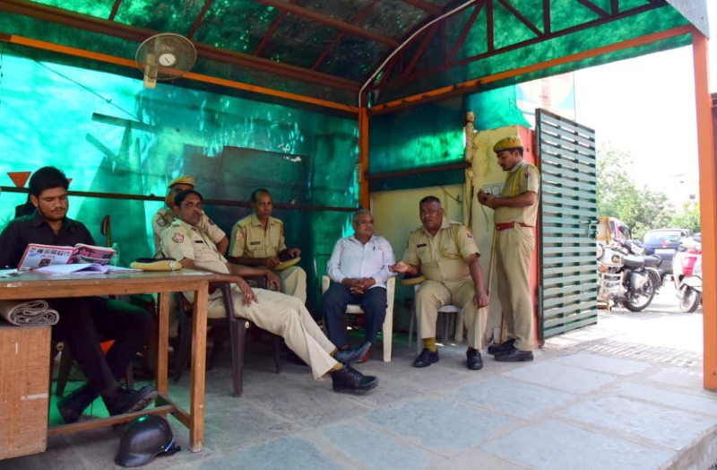 भाजपा मीडिया सेल के कुछ पदाधिकारी अमित शाह की बैठक की तैयारी में जुटे हुए थे और सैनी समाज के आठ-दस लोग वहां मौजूद थे, जो भाजपा के प्रदेश अध्यक्ष से मिलने आए हुए थे। सुरक्षा की स्थिति एेसी थी कि कार्यालय का मुख्य द्वार बंद कर रखा था और एक छोटा गेट खुला हुआ था, वहां भी पुलिस मौजूद थी। पुलिसकर्मी भी एेसे ही किसी को सीधे नहीं आने दे रहे थे। आने वाले को अपना नाम, पता, किससे मिलना है। यह लिखवा कर ही अंदर भेज रहे थे। साढ़े बारह बजे तक भाजपा के संगठन महामंत्री चन्द्रशेखर, महामंत्री भजन लाल शर्मा समेत इक्का-दुक्का पदाधिकारी मौजूद थे, लेकिन लोग इनसे मिलने की जगह अध्यक्ष का इंतजार कर रहे थे। बूंदी से आए सैनी समाज के एक व्यक्ति ने बताया कि वे अध्यक्ष मदन लाल सैनी से मिलने आए हैं। इंतजार कर रहे हैं, उनका स्वागत करेंगे, माला पहनाएंगे। उसके बाद एक काम है, उसके लिए फोन करवाना है।
