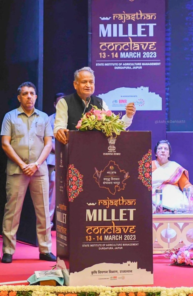 मुख्यमंत्री अशोक गहलोत ने कहा कि जिस रात राज्य में बारिश और ओलावृष्टि हुई उसके अगले दिन गिरदावरी के आदेश दे दिए थे। मिलेट कॉन्क्लेव के उद्घाटन सत्र में कृषि मंत्री लालचंद कटारिया, कृषि राज्यमंत्री मुरारी लाल मीणा, मुख्य सचिव उषा शर्मा व अन्य विशेषज्ञों ने अपने विचार रखे। मुख्यमंत्री अशोक गहलोत ने राज किसान ऐप का लोकार्पण किया और अलग-अलग जिलों से आए किसानों को सम्मानित किया। कृषि मंत्री लालचंद कटारिया ने कहा कि पूरी दुनिया कहां से कहां पहुंच गई। लेकिन आज हम फिर बाजरे पर आ गए हैं। शादियों में लोग तलाशते रहते हैं कि बाजरे की रोटी कहां मिलेगी।