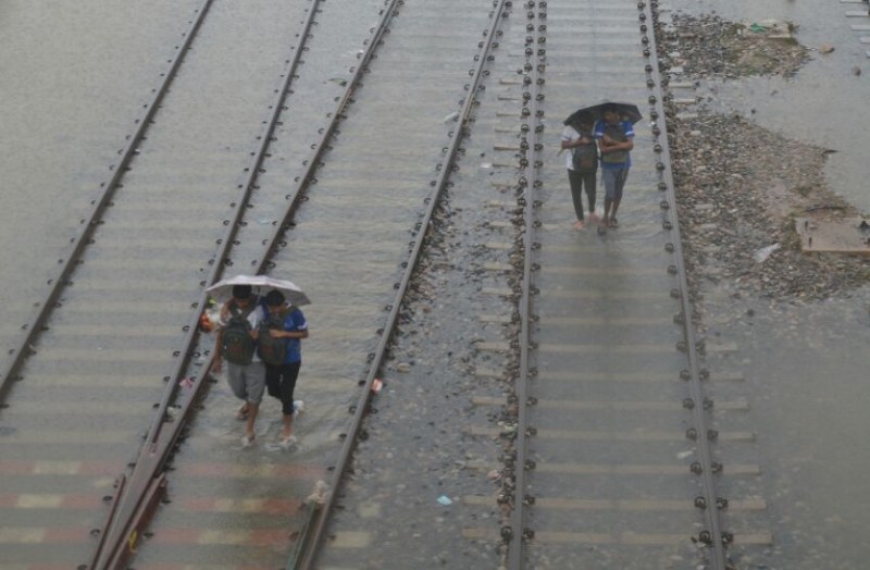 तेज बारिश के कारण सीकर में रेलवे स्टेशन पूरी तरह जलमग्न हो गया।