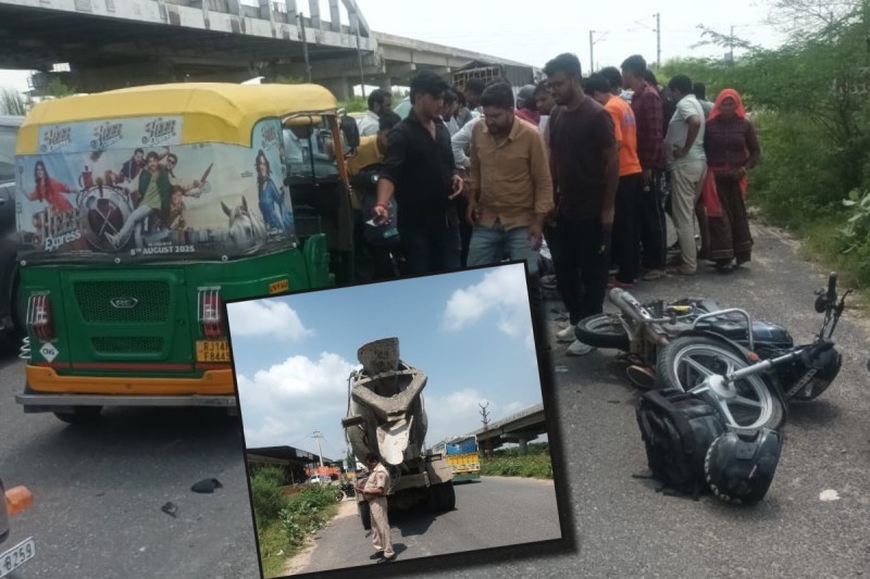रोड़ी मिक्सर ट्रक ने बाइक को मारी टक्कर (फोटो: पत्रिका)