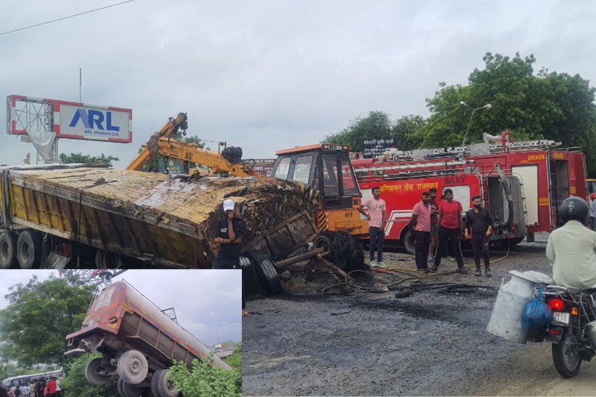 थानाधिकारी हरीशचंद्र सोलंकी के मुताबिक हादसा सुबह 4.45 बजे जयपुर-अजमेर हाइवे पर हुआ। एक साथ दो ट्रेलर और एक टैंकर की भिड़ंत हो गई। जिससे एक ट्रेलर में आग लग गई और केबिन में फंसे चालक व खलासी की जिंदा जलने से मौत हो गई। दमकल की 2 गाड़ियों को मौके पर बुलाया। दमकलकर्मियों ने कड़ी मशक्कत के बाद आग पर काबू पाया।