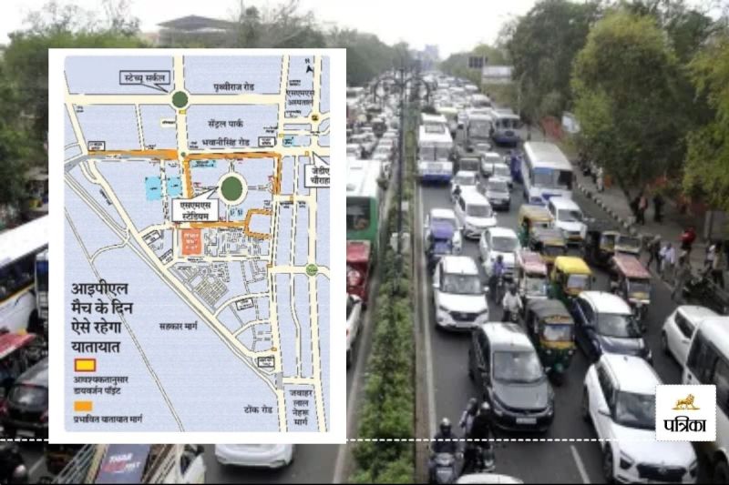 2- टोंक रोड पर यातायात को वाहनों के अत्यधिक दबाव होने की स्थिति में मैच के दर्शकों के वाहनों के अलावा सामान्य यातायात को गांधी नगर मोड़ से गांधी सर्कल की तरफ एवं आरबीआई कट से गणेश मंदिर की तरफ डायवर्ट किया जाएगा।