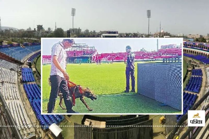 जयपुर . सवाईमानसिंह स्टेडियम में जांच करते सुरक्षा अधिकारी।
