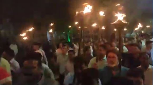 सफाई कर्मचारियों ने निकाला मशाल जुलुस