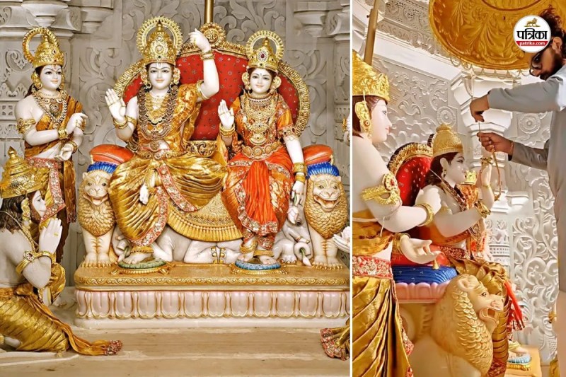 Ayodhya Ram Temple : अयोध्या के राममंदिर में राम जन्मभूमि ध्वजा स्थापना के शुभ अवसर पर जयपुर के शिल्पकारों ने एक बार फिर अपनी कला का परचम लहराया है। मंदिर परिसर के प्रथम तल पर स्थापित भगवान रामदरबार की भव्य मूर्ति तैयार करने वाले जयपुर के शिल्पकार सत्यनारायण पांडे और प्रशांत पांडे को विशेष शृंगार का दायित्व सौंपा गया था। दोनों शिल्पकारों ने दो दिन तक लगातार मंदिर परिसर में रहकर प्रतिमाओं को स्वर्णाभूषण से अलंकृत किया।