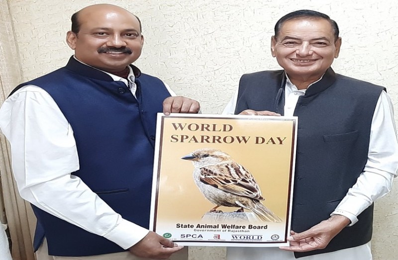 जयपुर। राजस्थान राज्य जीव जंतु कल्याण बोर्ड (Rajasthan State Animal Welfare Board) , एनिमल वेलफेयर बोर्ड ऑफ इंडिया ( Animal Welfare Board of India) ,वाइल्डलाइफ क्राइम कंट्रोल ब्यूरो (Wildlife Crime Control Bureau) , जिला पशु क्रूरता निवारण समिति (District Animal Cruelty Prevention Committee) और वल्र्ड संगठन (World Organization ) ने विश्व गौरैया दिवस (World Sparrow Day) के अवसर पर गौरैया संरक्षण के लिए विशेष पोस्टर (posters for sparrow conservation ) का विमोचन (released) किया।