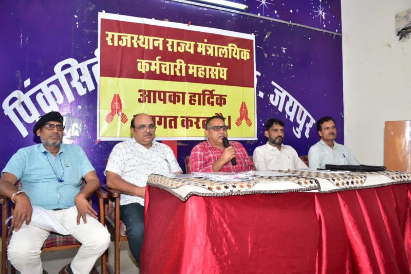 जयपुर. राजस्थान राज्य मंत्रालयिक कर्मचारियों के 64 दिन के आंदोलन के बाद सरकार के बार-बार आश्वासनों से तंग आकर कर्मचारियों में व्यापक आक्रोश है। इस संबंध में शुक्रवार को पिंक सिटी प्रेस क्लब में राजस्थान राज्य मंत्रालयिक कर्मचारी महासंघ ने प्रेस वार्ता में कर्मचारियों की मांगे पूरी करने पर आंदोलन की चेतावनी दी। महासंघ के प्रदेश अध्यक्ष राज सिंह चौधरी और प्रदेश महामंत्री वीरेंद्र दाधीच ने बताया कि सरकार मंत्रालयिक कर्मचारियों की महत्वपूर्ण मांगों पर छलावा कर रही है। राज्य सरकार द्वारा मंत्रालयिक कर्मचारियों की ग्रेड पे के मामले में केवल संस्थापन अधिकारी की ग्रेड पे बदला जा रहा है, जिसका मंत्रालयिक कर्मचारी विरोध करेंगे। प्रेस कॉन्फ्रेंस में सतवीर सिंह राजावत, विजय सिंह राजावत, जितेन्द्र सिंह, यतेन्द्र सिंह एवं मुकेश मुदगल भी मौजूद रहे।