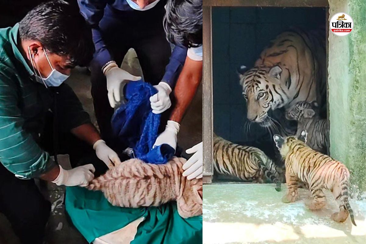 वरिष्ठ वन्यजीव चिकित्सक डॉ. अरविंद माथुर ने बताया कि बाघिन रानी ने दो माह पूर्व पांच शावकों को जन्म दिया था। अब दो महीने पूरे होने पर उन्हें कराल में लाया गया है। इस दौरान सभी शावकों को बीमारियों सेबचाव के लिए पहला टीका लगाया गया। शावकों की लिंग पहचान की गई। जिसमें सफेद शावक समेत दो अन्य गोल्डन शावक नर व दो अन्य गोल्डन शावक मादा है।