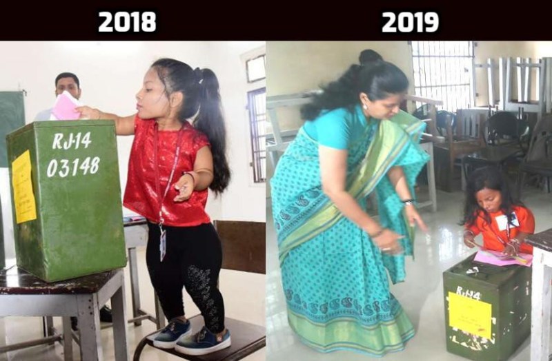 राजस्थान विश्वविद्यालय छात्रसंघ चुनाव 2019 के लिए मंगलवार को हो रही वोटिंग के दौरान कई तरह के नज़ारे देखने को मिले हैं। जयपुर के महारानी कॉलेज में अध्यक्ष पद की दावेदारी कर रही ढाई फुट की सोनाली कुमावत ने भी अपने मताधिकार का प्रयोग किया। इस दौरान कॉलेज स्टाफ ने सोनाली की हाइट और उनकी सहूलियत को देखते हुए मतपेटी को टेबल से उतरवाकर नीचे ज़मीन पर रखवा दिया।
