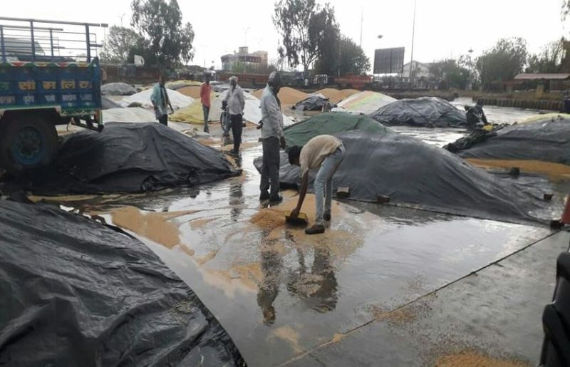 प्रदेश में तेज बारिश, ओले और अंधड़ ने तबाही मचाई। प्रदेशभर में किसानों की मेहनत की फसल कहीं खेतों में तो कहीं मंडियों में बर्बाद हो गई। कृषि विभाग ने गेहूं की फसल में 10 प्रतिशत खराबे की आशंका जताई है। कोटा की भामाशाहमंडी में एक लाख बोरी से अधिक अनाज भीग गया।