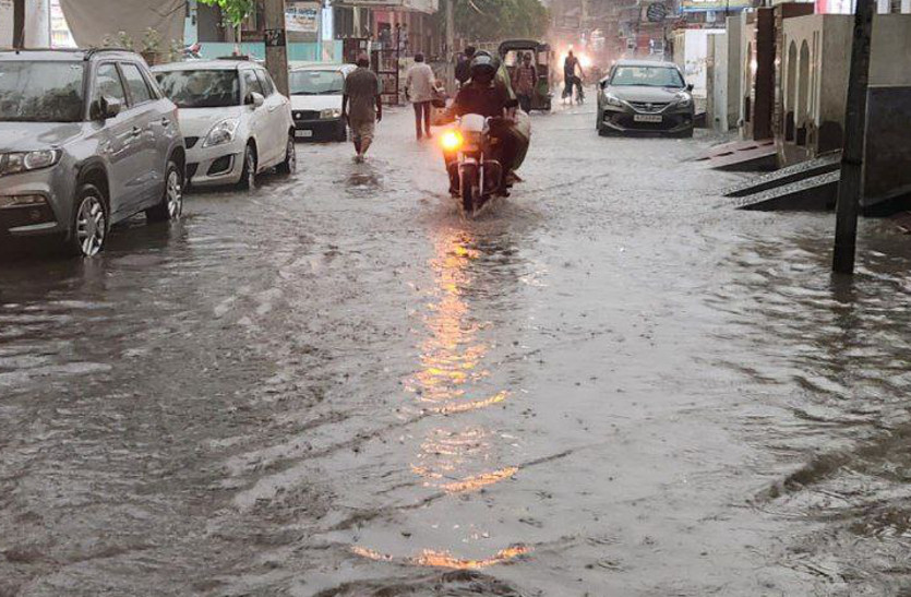 झालावाड़ जिले में रविवार को सुबह से ही काले बादल छाए रहे। सुबह 9 बजे तक मौसम एकदम साफ था। 9.30 बजे आसमान में बादल छाए और अंधेरा हो गया। इसके बाद तेज गति से हवाएं चलने लगी। इससे लोगों के घरों के टीन टप्पर उड़ गए। इसके साथ ही बरसात शुरू हो गई।