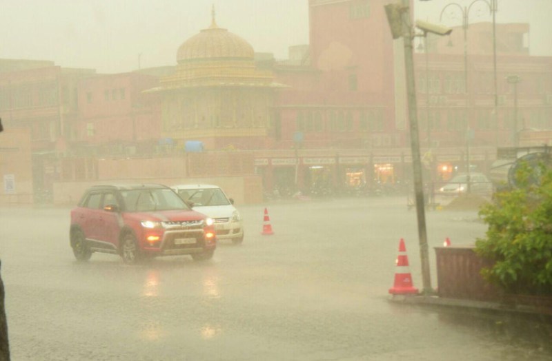 जयपुर। प्रदेश में पिछले कुछ दिनों से मौसम में लगातार बदलाव आ रहा है। जयपुर सहित प्रदेश के कई हिस्सों में शुक्रवार को फिर मौसम बदल गया। जयपुर में शाम को अचानक मौसम बदला और तेज हवा के साथ झमाझम बारिश हुई। सुबह से ही सूरज ने तेवर दिखाए। इससे गर्मी बढऩे से लोग बेहाल रहे। दिनभर धूप में तेजी रही। दोपहर बाद शहर में अचानक मौसम बदला और तेज हवा के साथ तेज बारिश हुई। इससे सड़कों पर पानी भर गया और लोगों ने आने जाने में परेशानी हुई। तापमान में गिरावट दर्ज की है।