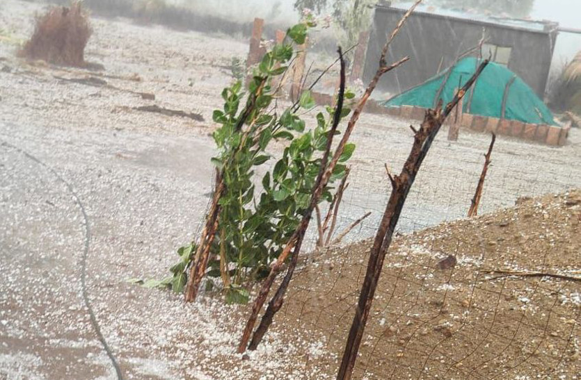 Rajasthan Weather Update : जयपुर। जोधपुर, जैसलमेर में 80-90 किमी प्रतिघंटे की रफ्तार से आए अंधड़ से जनजीवन अस्त-व्यस्त हो गया। वहीं बीकानेर, डूंगरपुर, नागौर, कोटा, अजमेर सहित आस-पास के जिलों में तेज बारिश के साथ ओलावृष्टि हुई। बीकानेर में महज दो घंटे में 72.8 मिमी बरसात हुई। इस दौरान ओले भी गिरे। वहीं फलौदी में 36.8 व जोधपुर में 10.4 मिमी बरसात हुई। डूंगरपुर में एक घंटे तक झमाझम बारिश हुई, साथ ही खूब ओले भी गिरे।