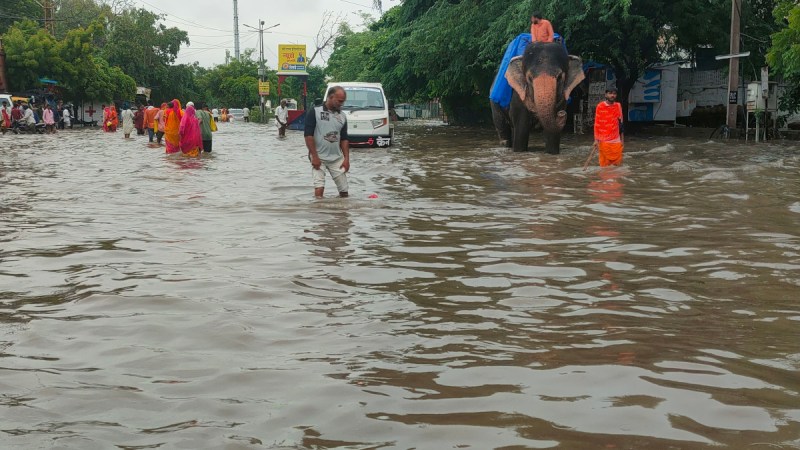 इसी प्रकार जोधपुर में एक घंटे में शहर में एक साथ 90 मिलीमीटर पानी बरस गया। बारिश से अधिकांश सड़कें, गलियां, मौहल्ले, चौराहे ताल-तलैय्या बन गए। गंगाना तालाब लबालब होने से डूब क्षेत्र में बने मकानों में पानी भर गया। कई कॉलोनियां में पानी भर गया। शहर में कई इलाकों में शाम तक पानी नहीं उतरा। चावण्डा गांव टापू बन गया। पुलिस और एसडीआरएफ के जवानों ने नांव की मदद से 50-55 मासूम बच्चों को सकुशल घर तक पहुंचाया।